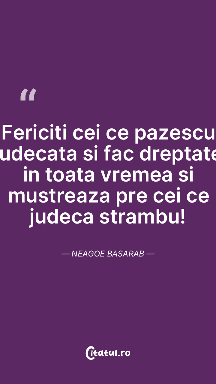 Fericiti cei ce pazescu judecata si fac drept ... Citește tot citatul >