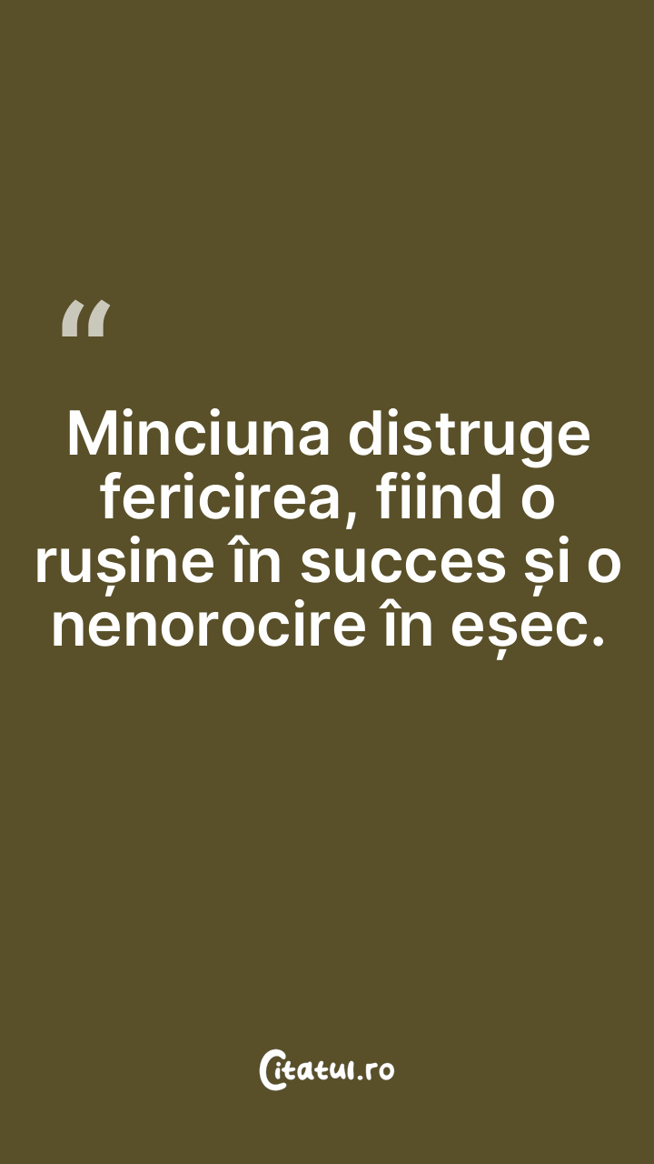 Minciuna distruge fericirea, fiind o rușine î ... Citește tot citatul >