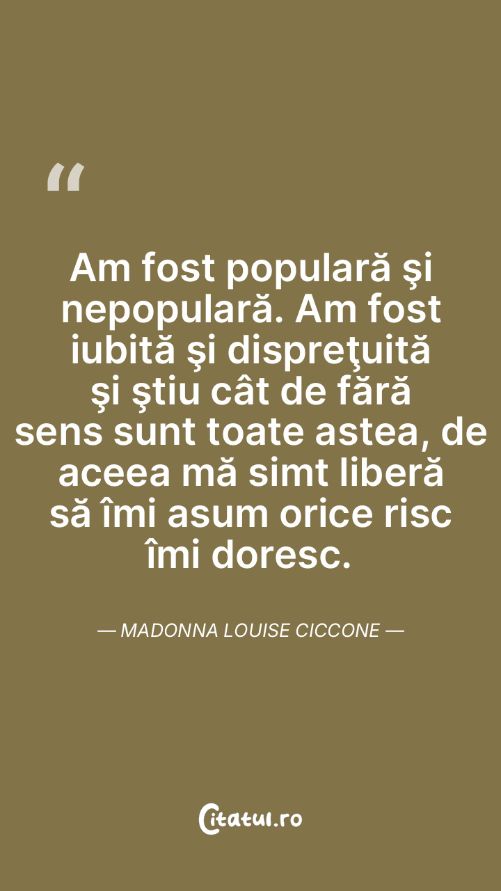 Am fost populară şi nepopulară. Am fost iubit ... Citește tot citatul >