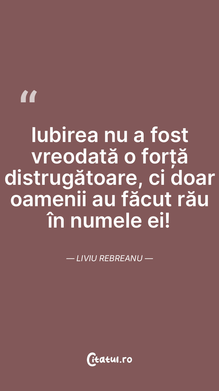 Iubirea nu a fost vreodată o forță distrugăto ... Citește tot citatul >