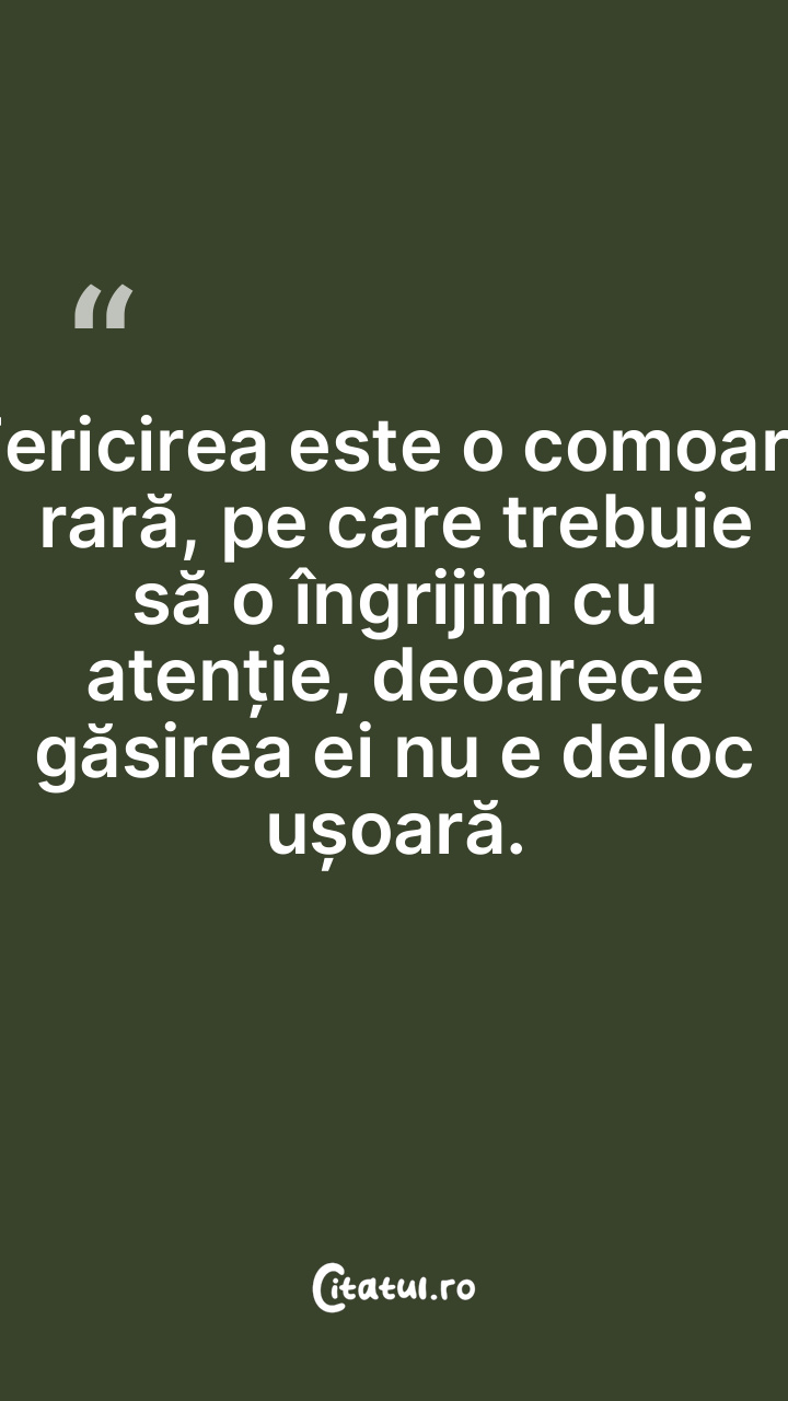 Fericirea este o comoară rară, pe care trebui ... Citește tot citatul >