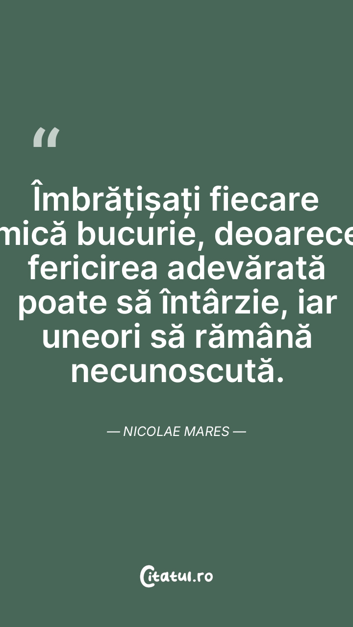 Îmbrățișați fiecare mică bucurie, deoarece fe ... Citește tot citatul >