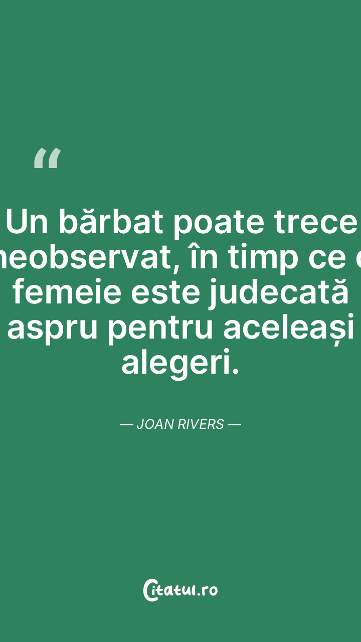 Un bărbat poate trece neobservat, în timp ce ... Citește tot citatul >