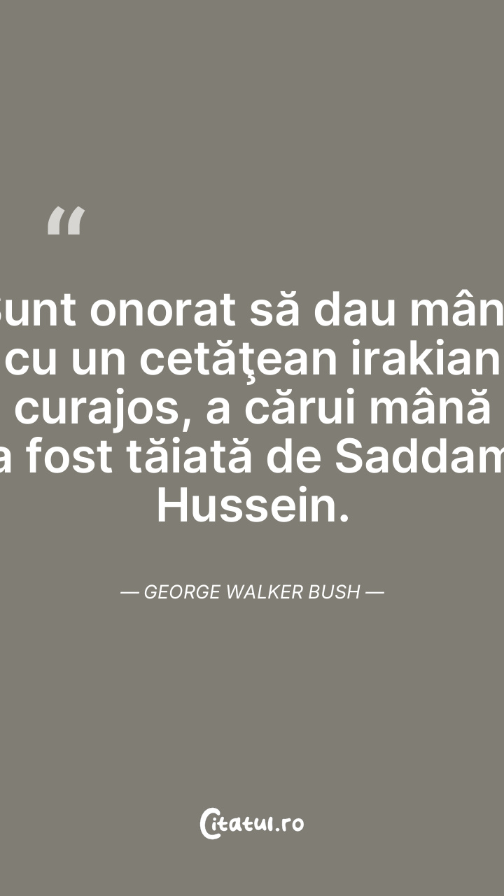 Sunt onorat să dau mâna cu un cetăţean irakia ... Citește tot citatul >