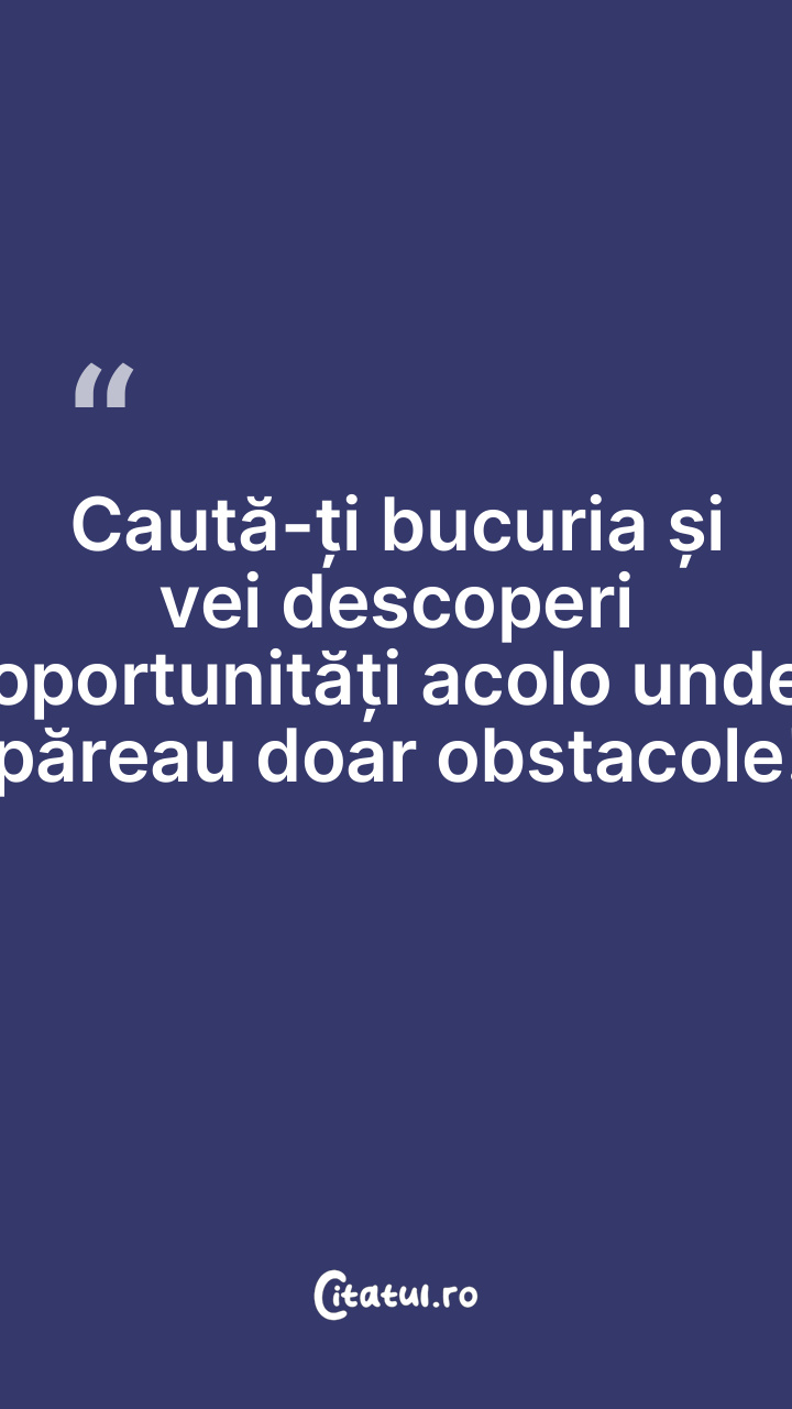Caută-ți bucuria și vei descoperi oportunităț ... Citește tot citatul >