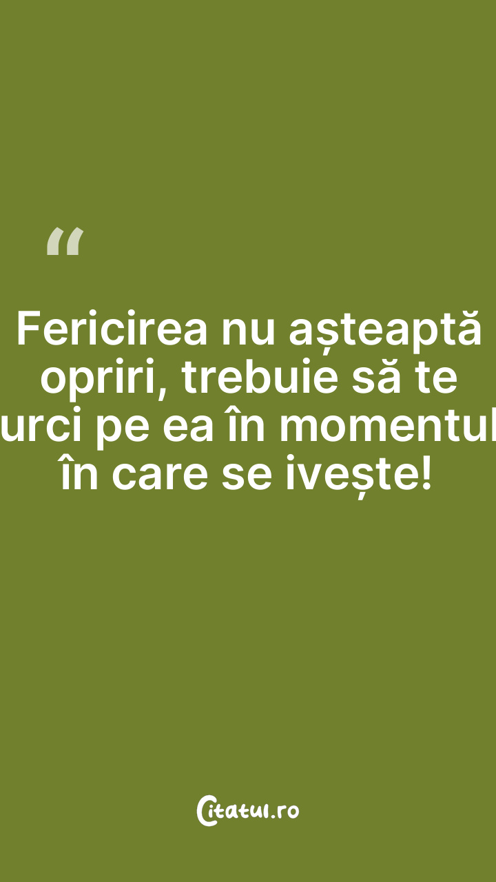 Fericirea nu așteaptă opriri, trebuie să te u ... Citește tot citatul >