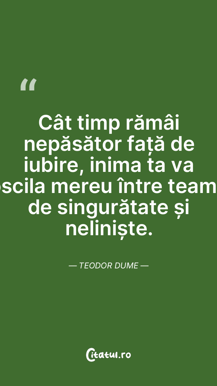 Cât timp rămâi nepăsător față de iubire, inim ... Citește tot citatul >