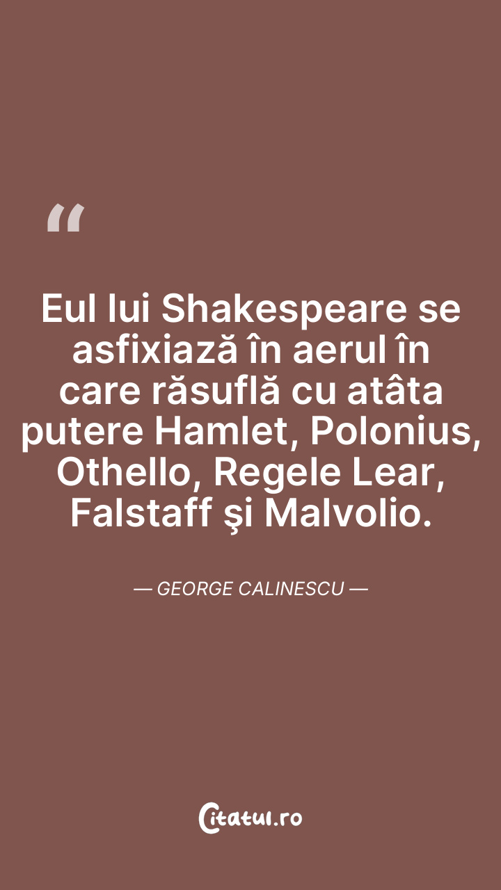 Eul lui Shakespeare se asfixiază în aerul în ... Citește tot citatul >