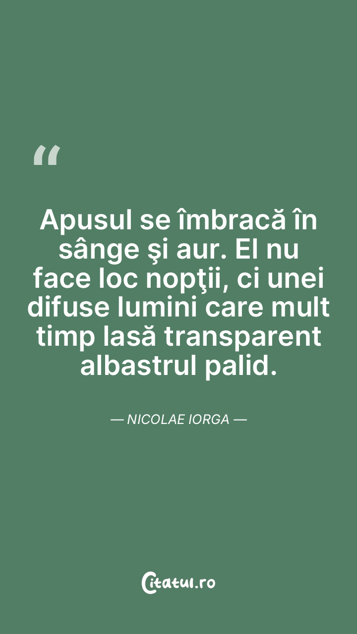 Apusul se îmbracă în sânge şi aur. El nu face ... Citește tot citatul >