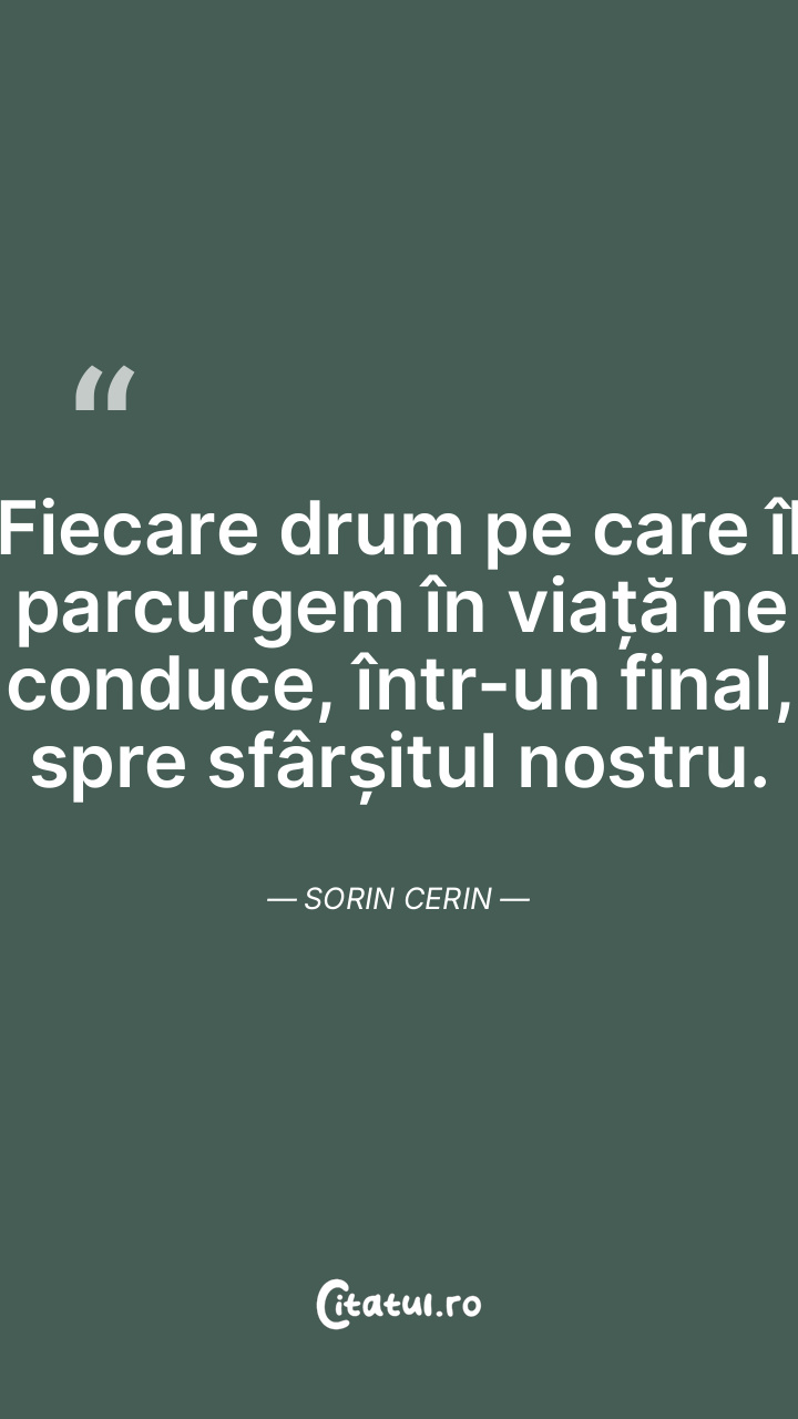 Fiecare drum pe care îl parcurgem în viață ne ... Citește tot citatul >