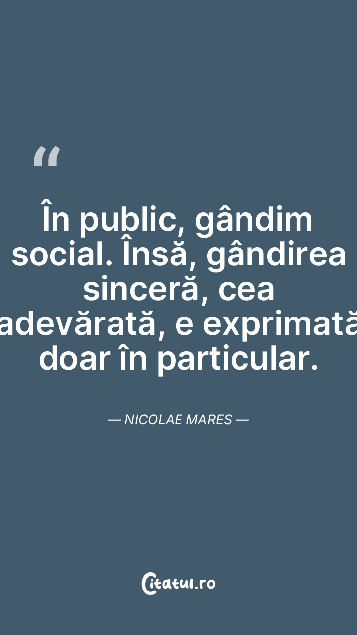 În public, gândim social. Însă, gândirea sinc ... Citește tot citatul >