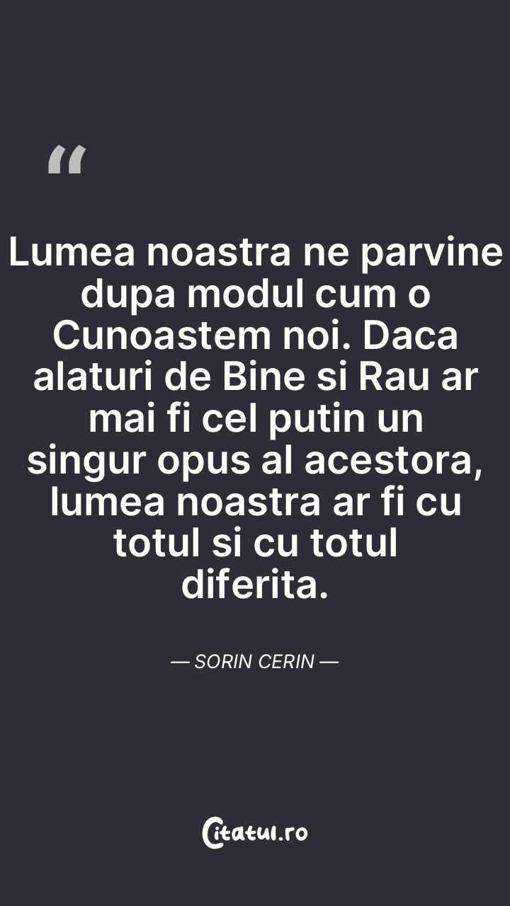 Lumea noastra ne parvine dupa modul cum o Cun ... Citește tot citatul >