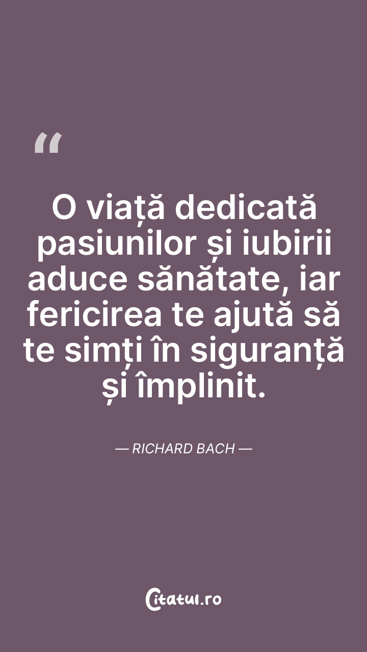 O viață dedicată pasiunilor și iubirii aduce ... Citește tot citatul >