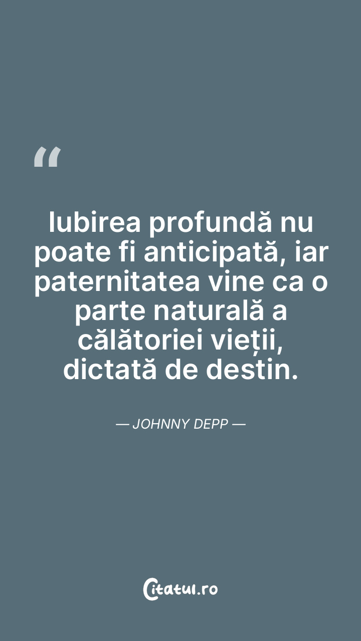 Iubirea profundă nu poate fi anticipată, iar ... Citește tot citatul >