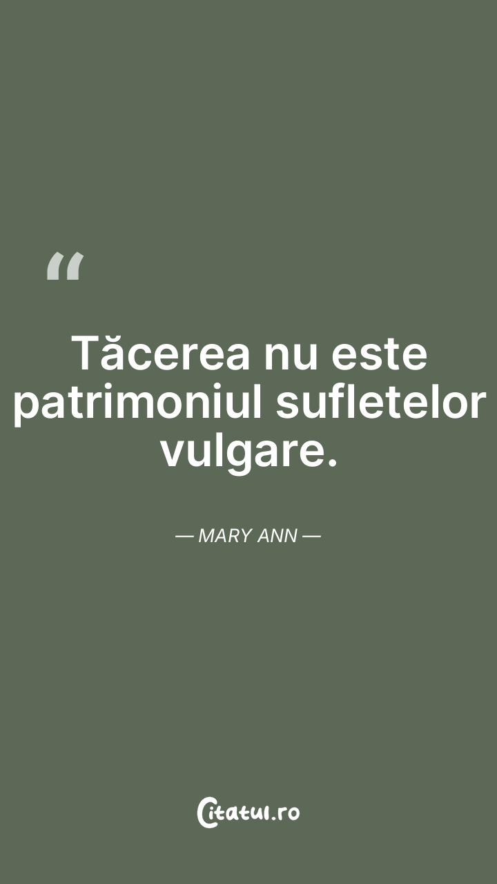 Tăcerea nu este patrimoniul sufletelor vulgar ... Citește tot citatul >