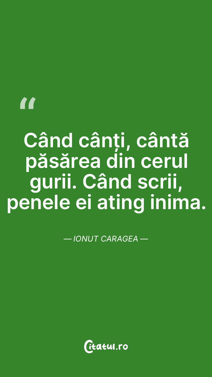 Când cânți, cântă păsărea din cerul gurii. Câ ... Citește tot citatul >