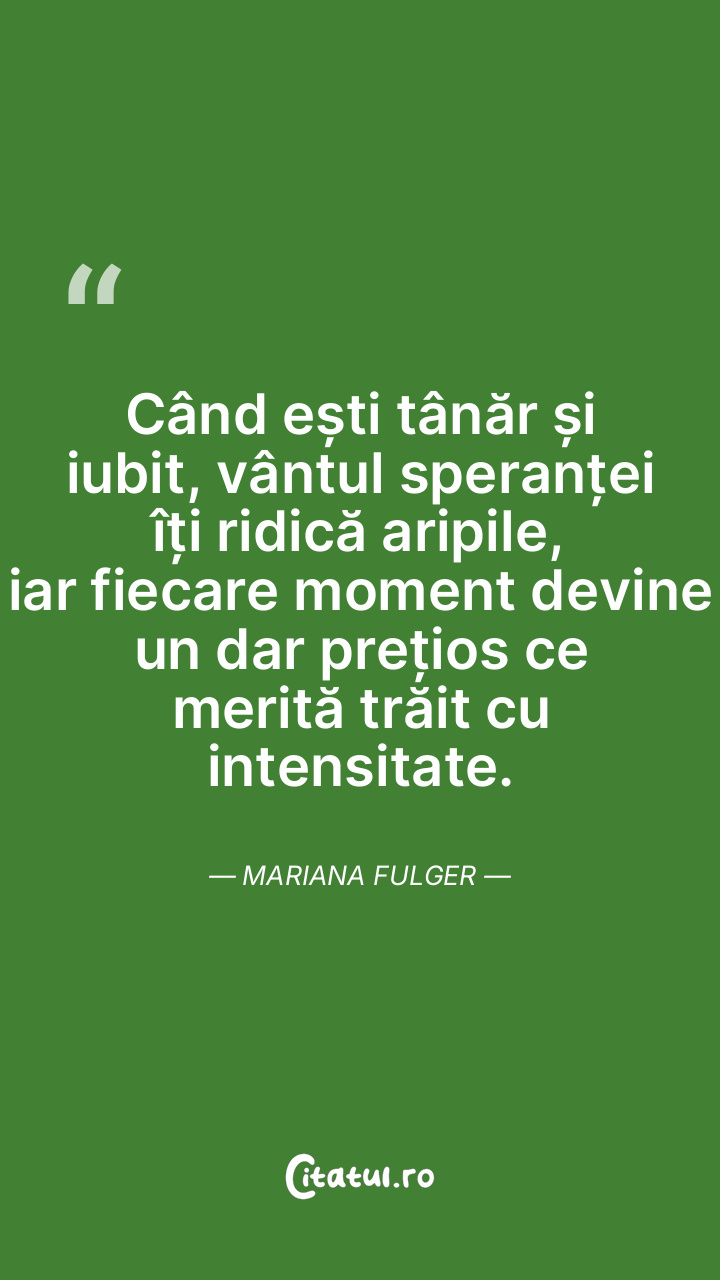 Când ești tânăr și iubit, vântul speranței îț ... Citește tot citatul >