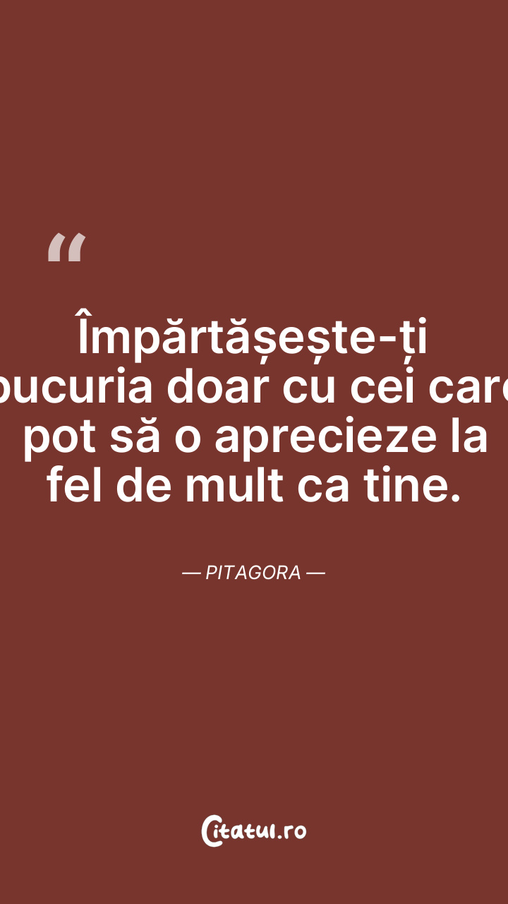 Împărtășește-ți bucuria doar cu cei care pot ... Citește tot citatul >