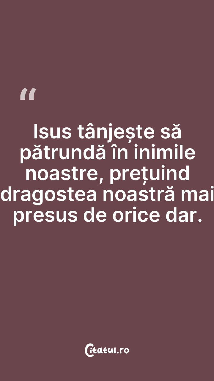 Isus tânjește să pătrundă în inimile noastre, ... Citește tot citatul >