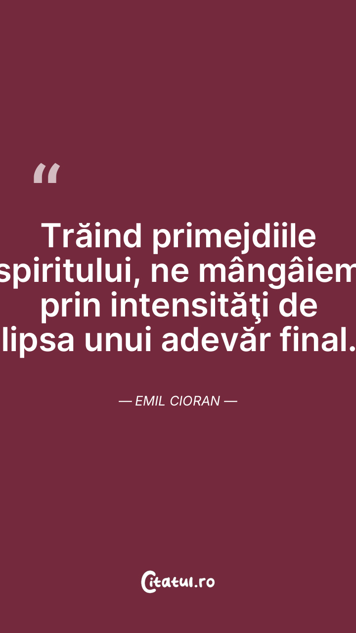 Trăind primejdiile spiritului, ne mângâiem pr ... Citește tot citatul >