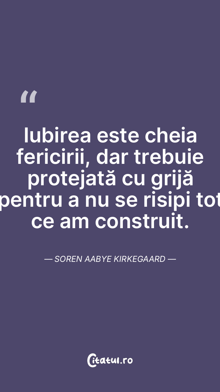 Iubirea este cheia fericirii, dar trebuie pro ... Citește tot citatul >