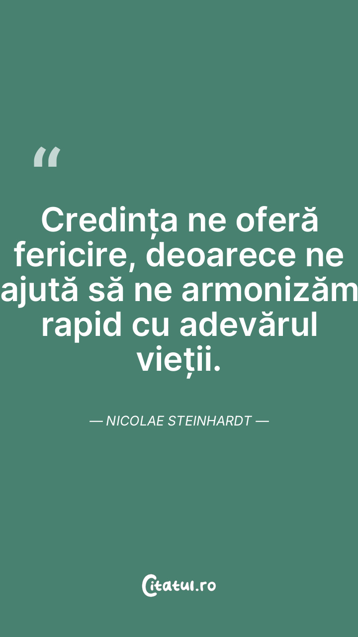 Credința ne oferă fericire, deoarece ne ajută ... Citește tot citatul >