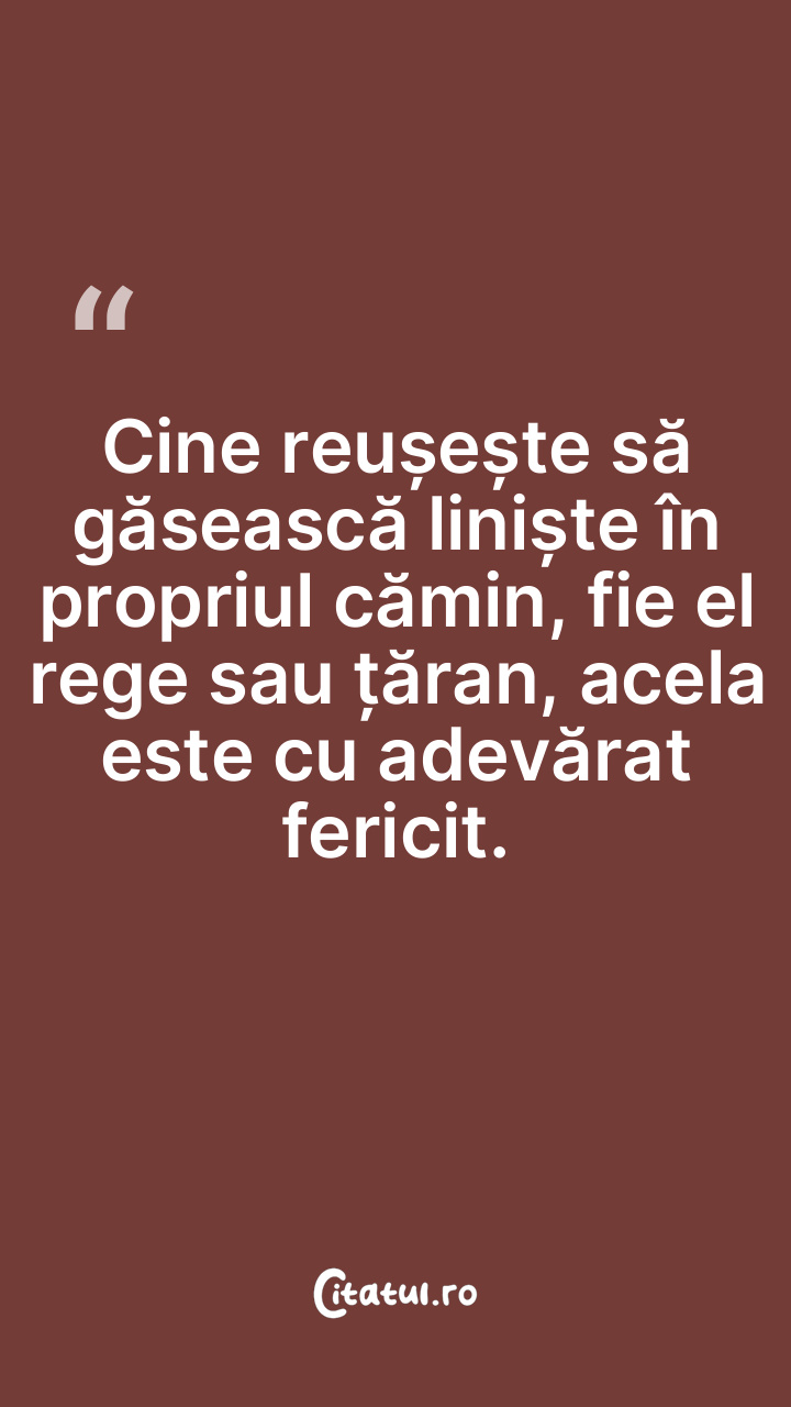 Acela este cel mai fericit, rege sau taran, c ... Citește tot citatul >