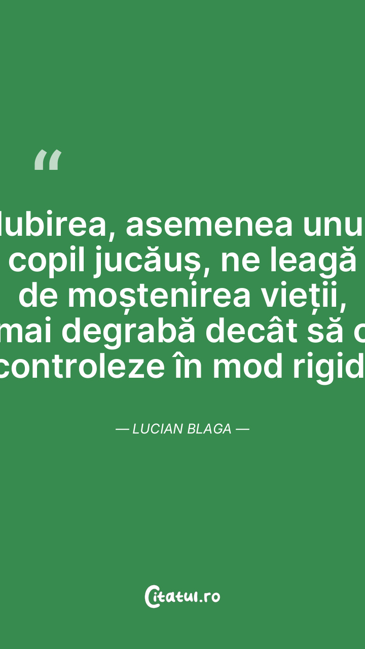 Iubirea, asemenea unui copil jucăuș, ne leagă ... Citește tot citatul >