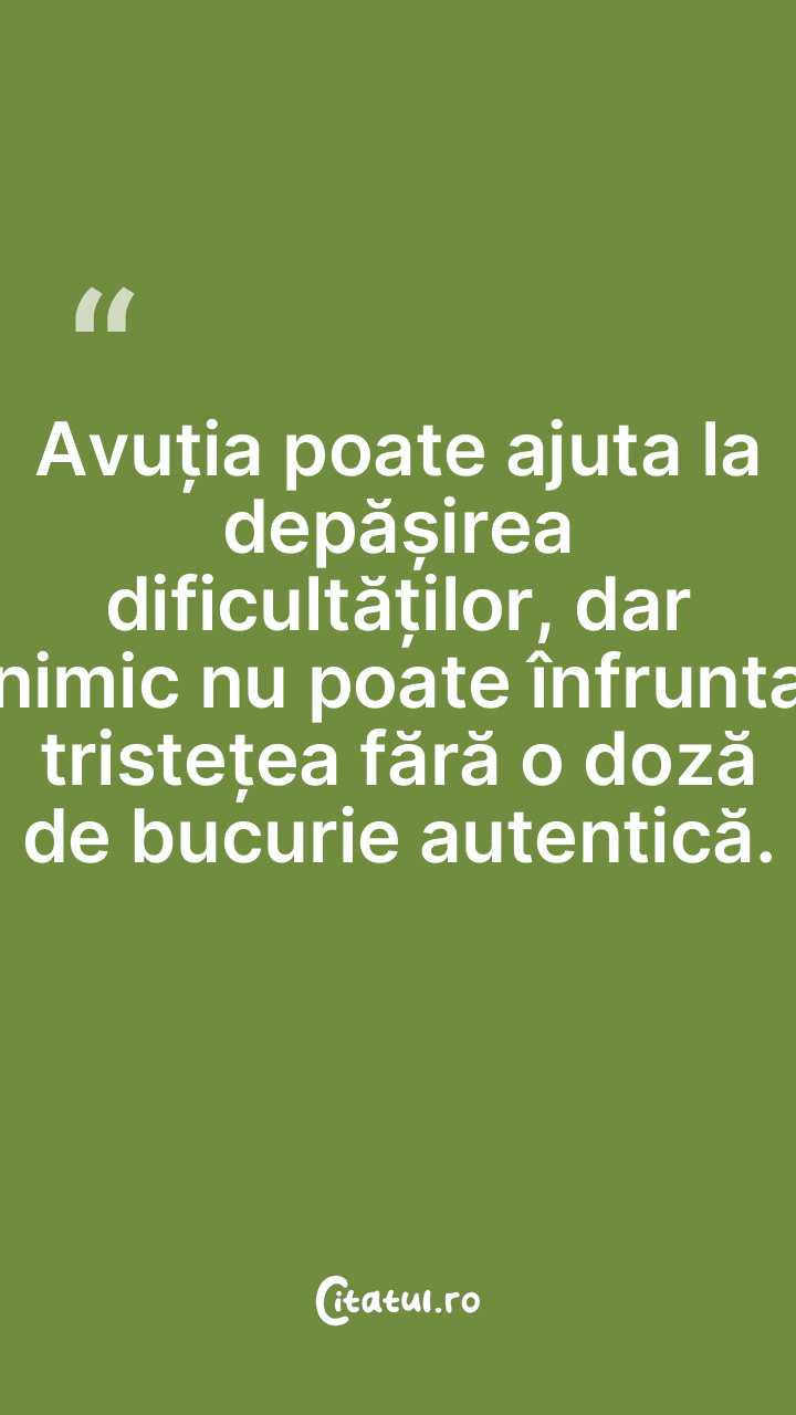 Avuția poate ajuta la depășirea dificultățilo ... Citește tot citatul >