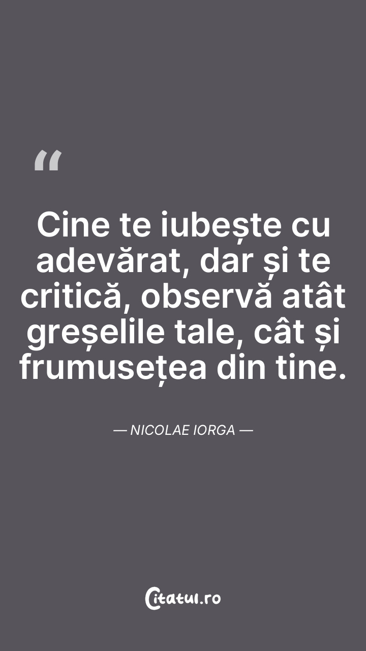 Cine te iubește cu adevărat, dar și te critic ... Citește tot citatul >