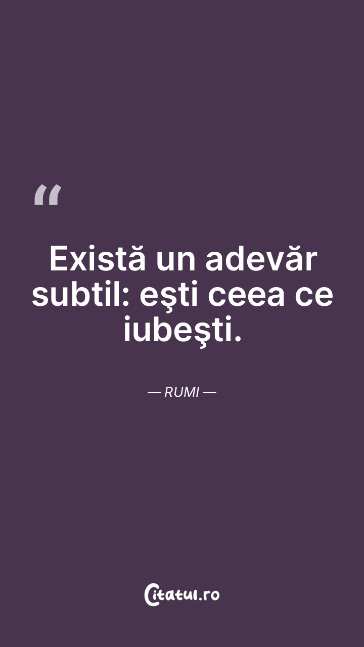 Există un adevăr subtil: eşti ceea ce iubeşti ... Citește tot citatul >