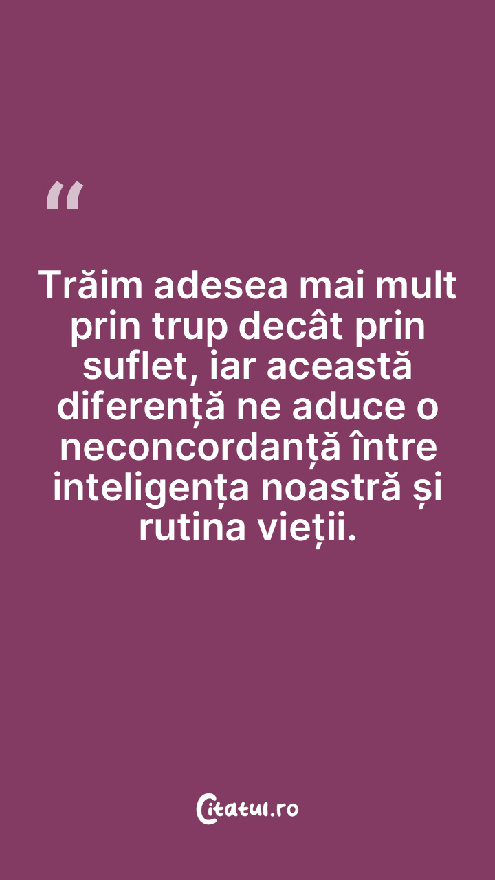 Trăim adesea mai mult prin trup decât prin su ... Citește tot citatul >