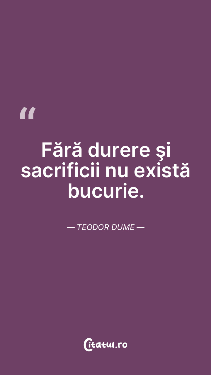 Fără durere şi sacrificii nu există bucurie. ... Citește tot citatul >