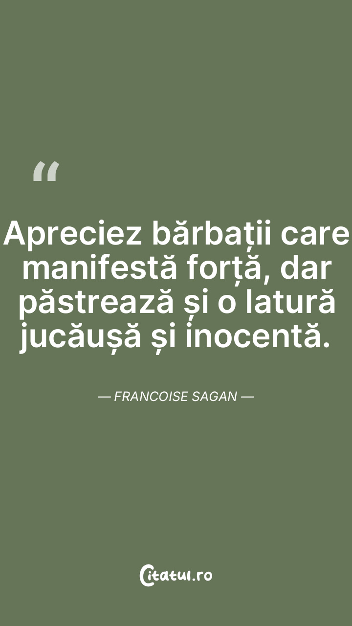 Apreciez bărbații care manifestă forță, dar p ... Citește tot citatul >