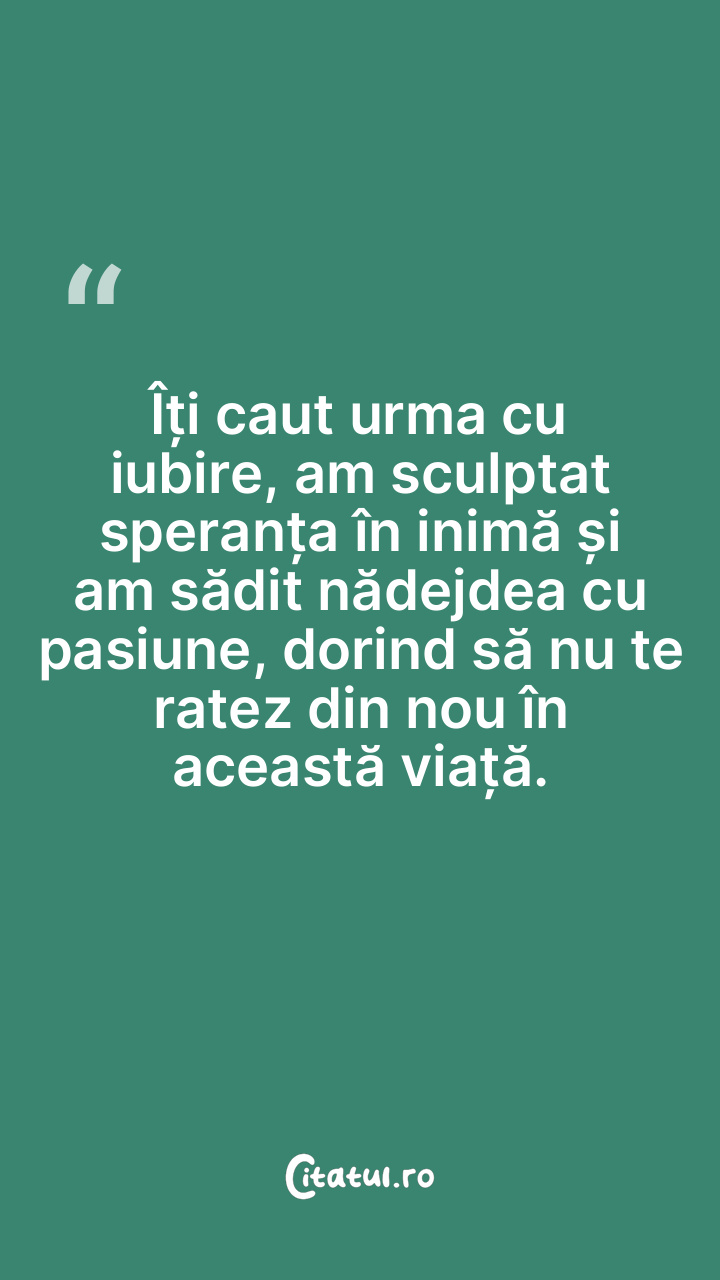 Îți caut urma cu iubire, am sculptat speranța ... Citește tot citatul >