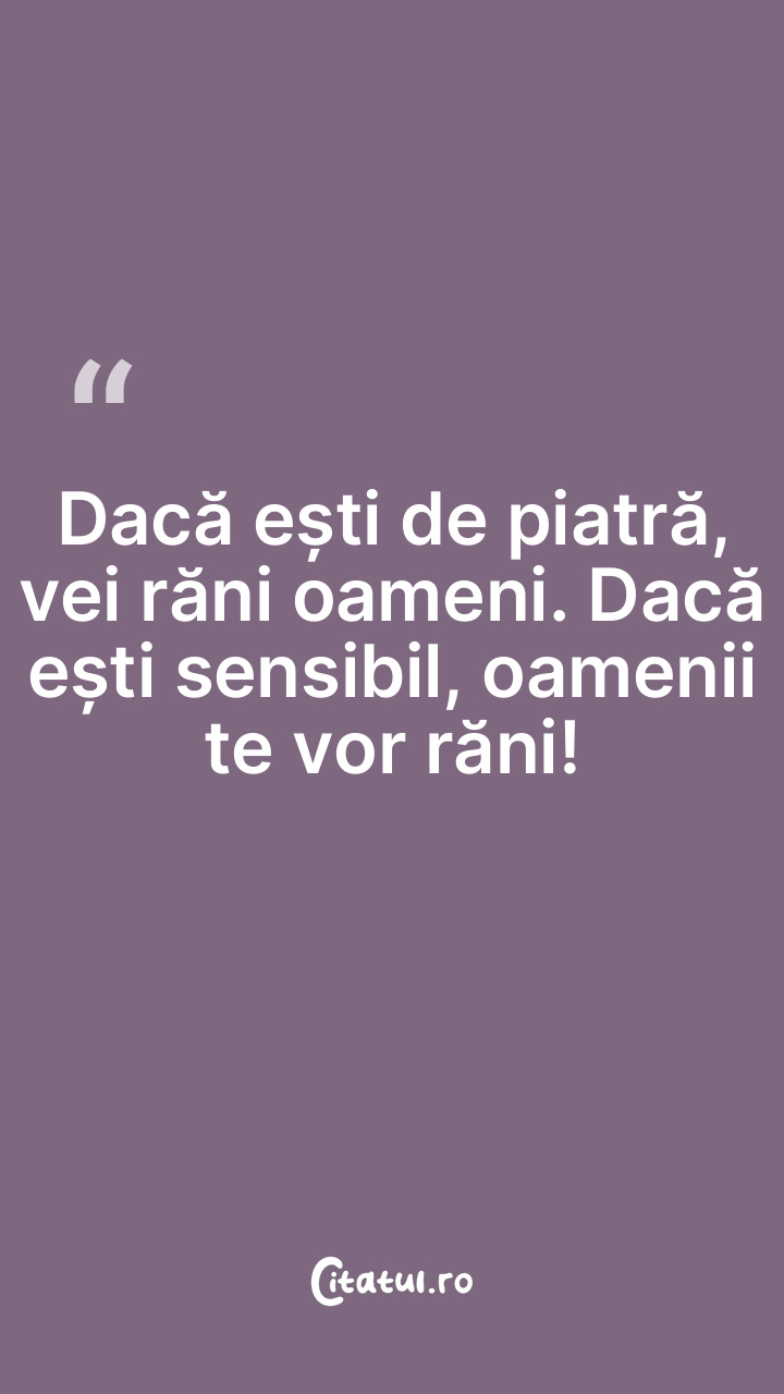Dacă ești de piatră, vei răni oameni. Dacă eș ... Citește tot citatul >