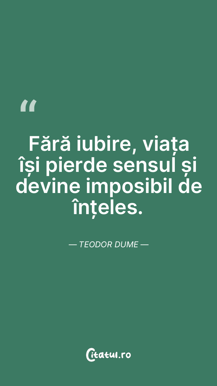 Fără iubire, viața își pierde sensul și devin ... Citește tot citatul >