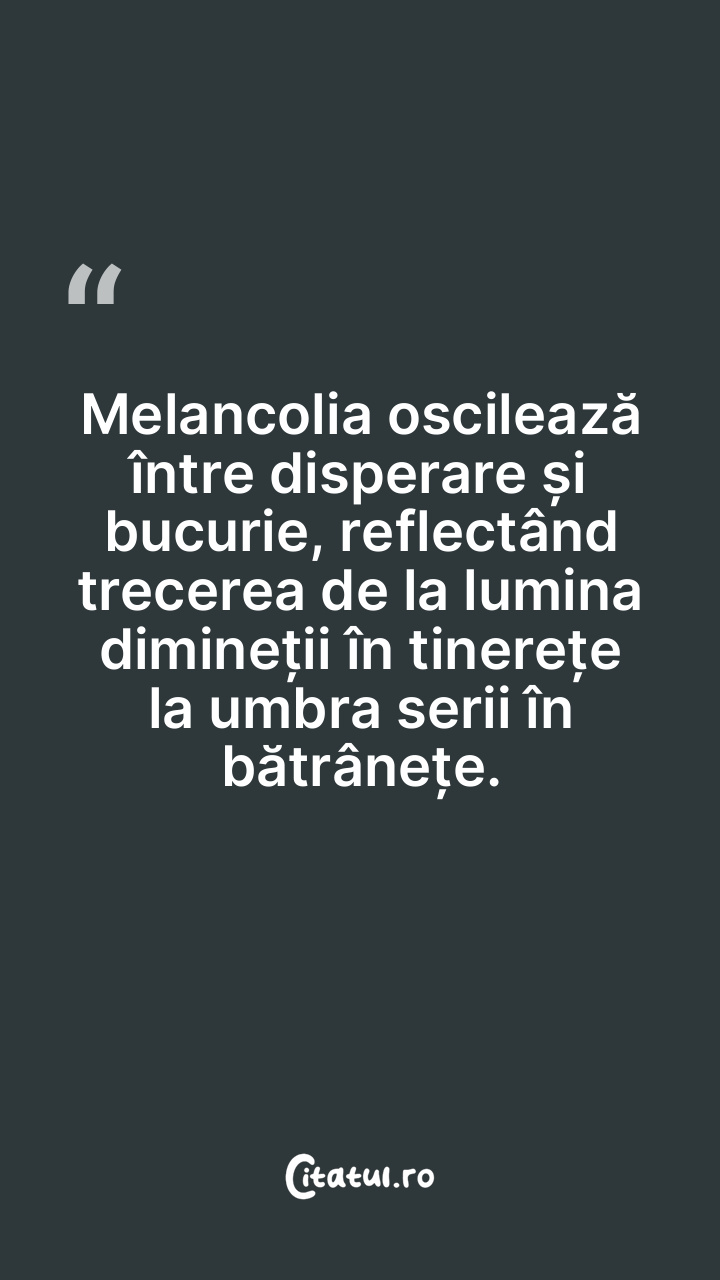 Melancolia oscilează între disperare și bucur ... Citește tot citatul >