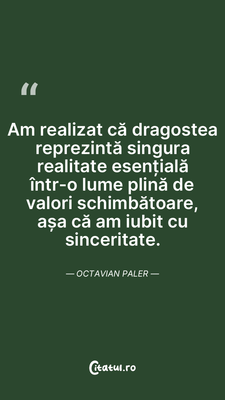 Am realizat că dragostea reprezintă singura r ... Citește tot citatul >
