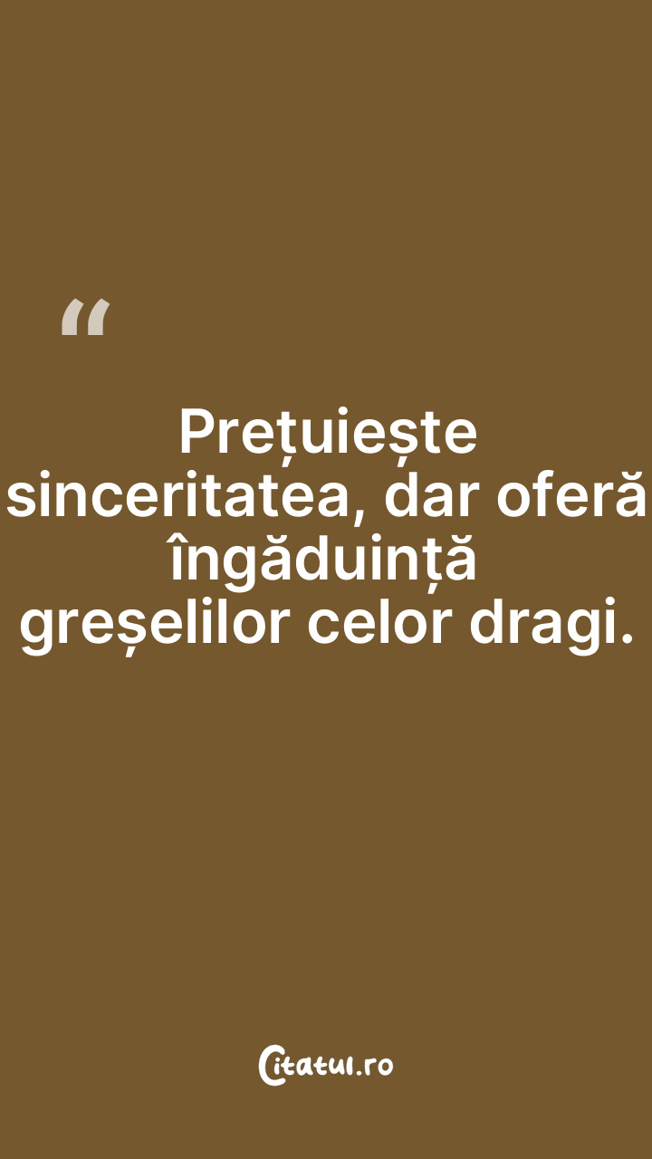 Prețuiește sinceritatea, dar oferă îngăduință ... Citește tot citatul >