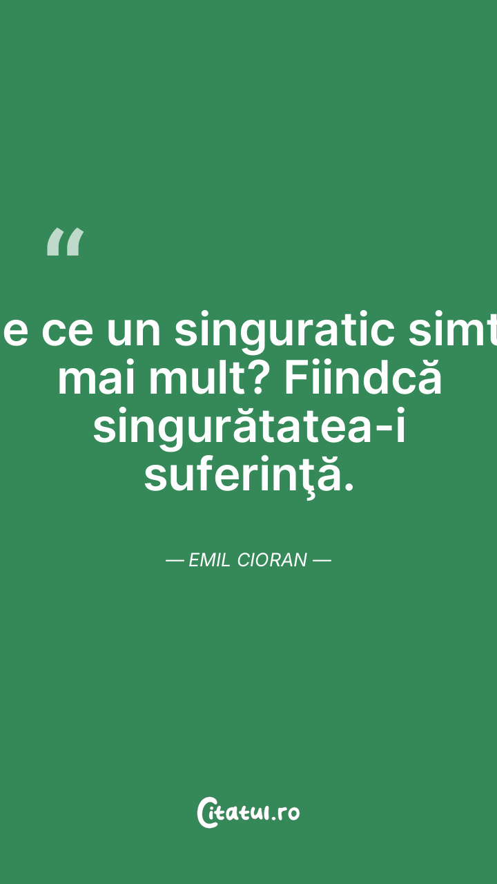 De ce un singuratic simte mai mult? Fiindcă s ... Citește tot citatul >