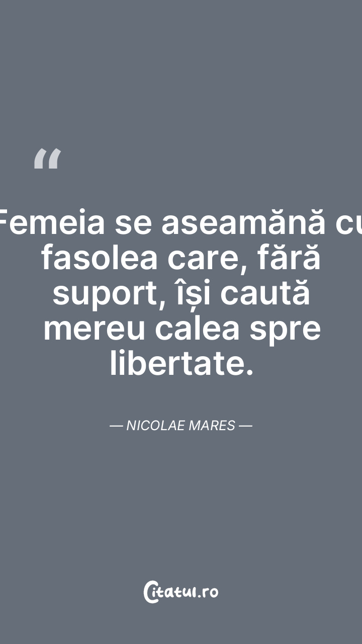 Femeia se aseamănă cu fasolea care, fără supo ... Citește tot citatul >