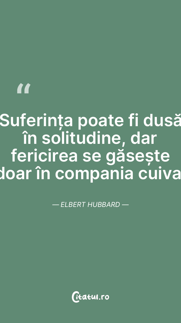 Suferința poate fi dusă în solitudine, dar fe ... Citește tot citatul >