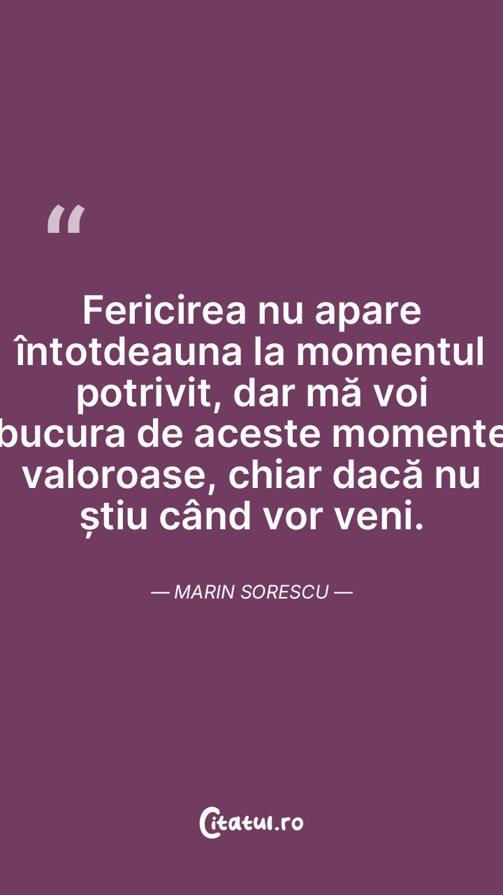 Fericirea nu apare întotdeauna la momentul po ... Citește tot citatul >