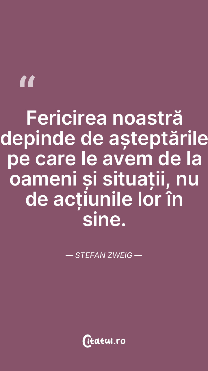 Fericirea noastră depinde de așteptările pe c ... Citește tot citatul >