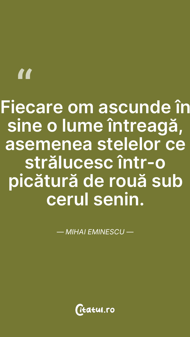 Fiecare om ascunde în sine o lume întreagă, a ... Citește tot citatul >