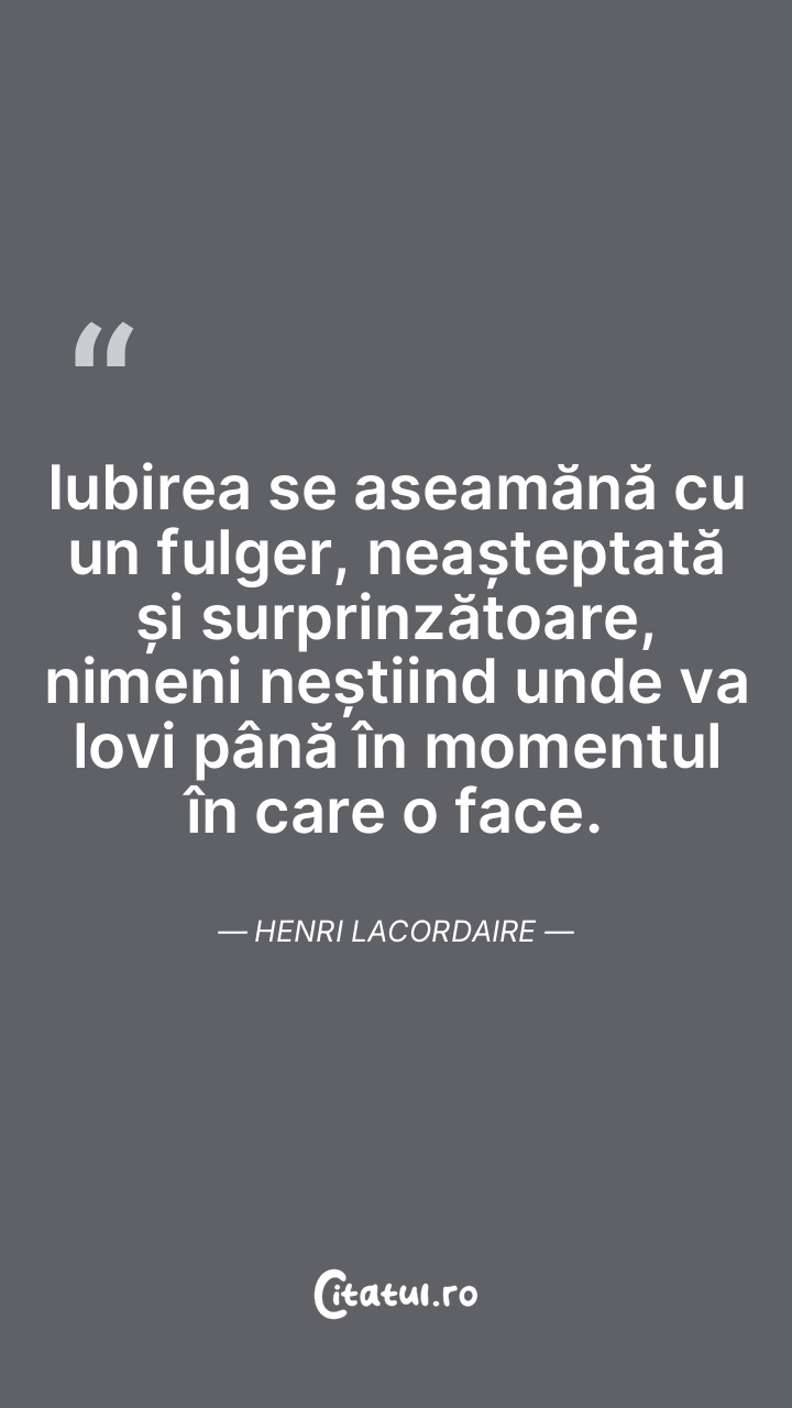 Iubirea se aseamănă cu un fulger, neașteptată ... Citește tot citatul >