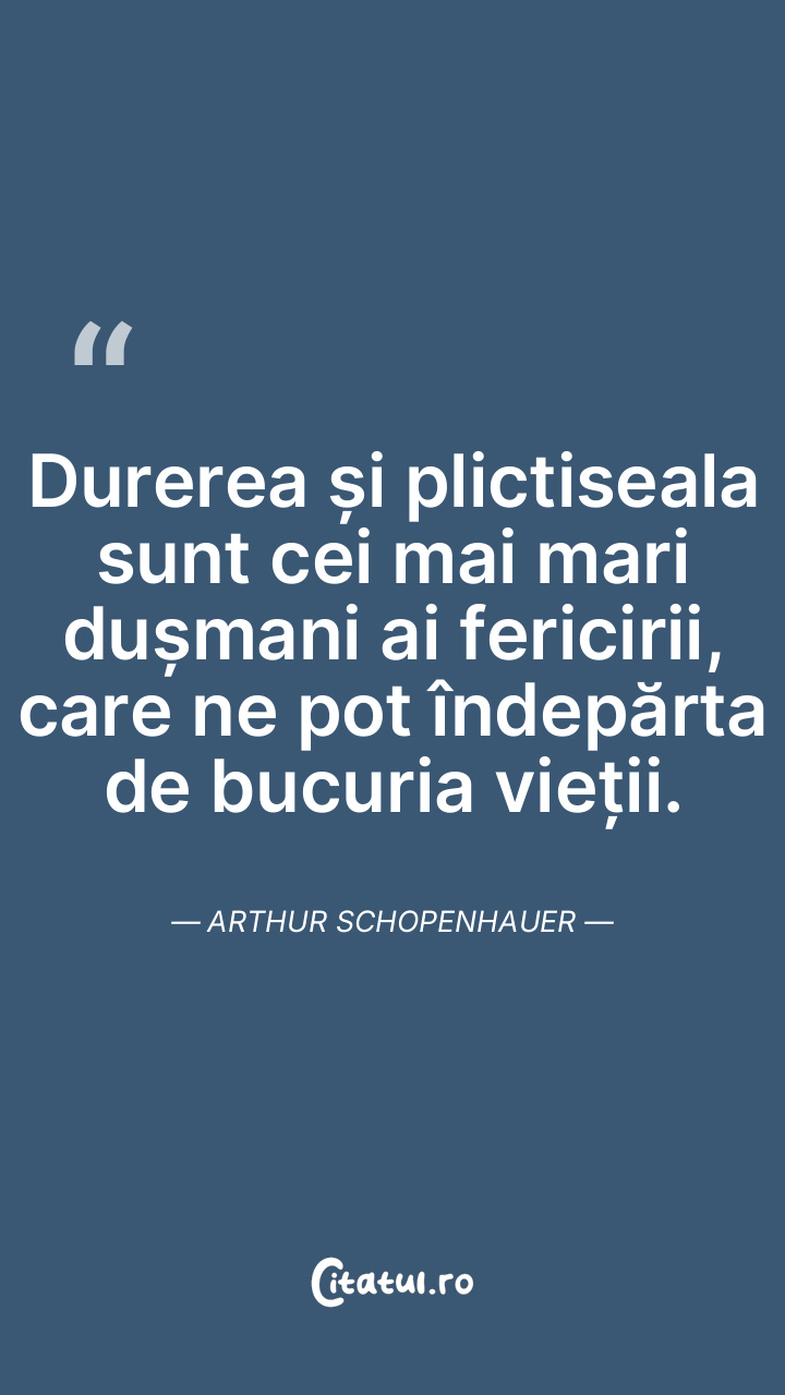 Cei doi mari inamici ai fericirii sunt durere ... Citește tot citatul >