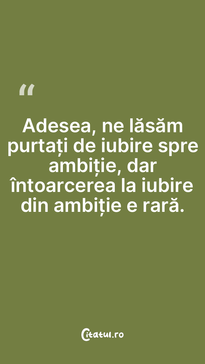 Adesea, ne lăsăm purtați de iubire spre ambiț ... Citește tot citatul >