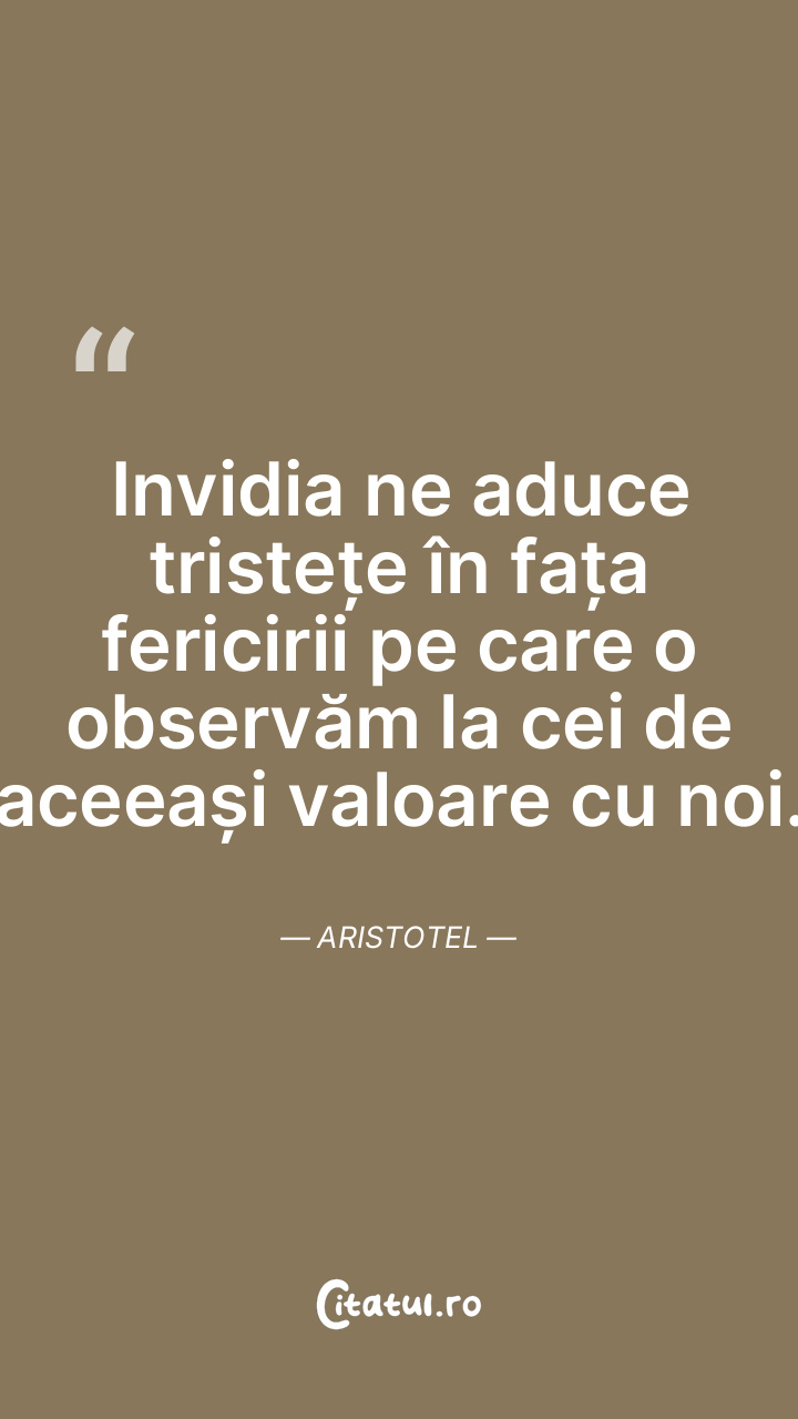 Invidia ne aduce tristețe în fața fericirii p ... Citește tot citatul >